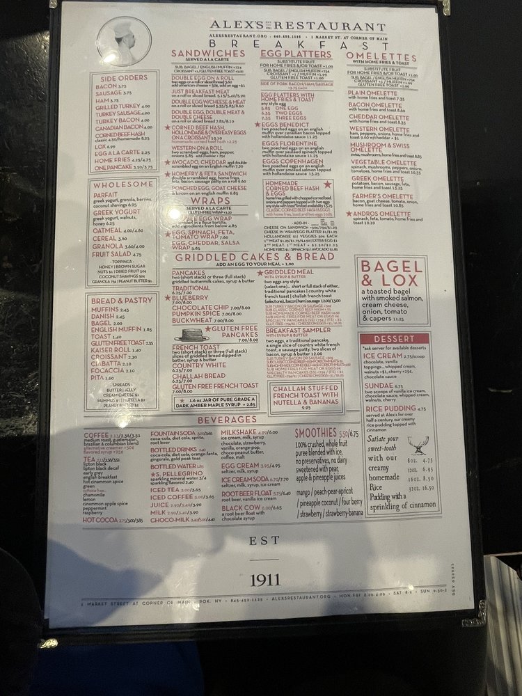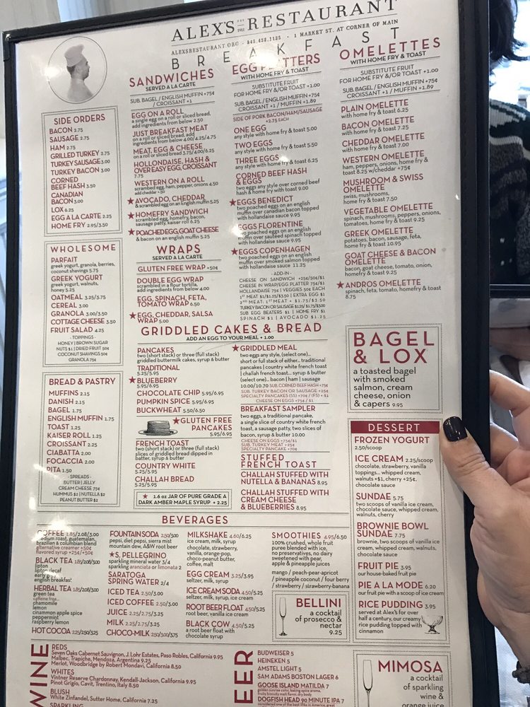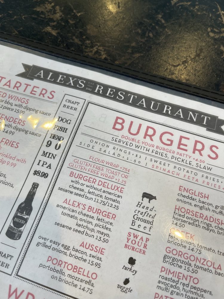 Alex's Restaurant Menu